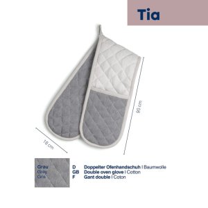 Stylová, praktická a bezpečná – dvojitá kuchyňská rukavice Tia od značky KELA ti poskytne skvělou ochranu při manipulaci s horkým nádobím. Díky přírodnímu materiálu a příjemnému designu v nugátově-zelené kombinaci se hodí do každé kuchyně.