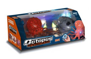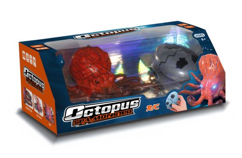 Chobotnice RC na dálkové ovládání. Rozměry 17x12x7 cm. Infračervený port. Světelné efekty očí. 3xAAA baterie do chobotnice, 2xAAA do ovladače nejsou součástí. Dotykem čela aktivace efektů. Ovladač - tlačítko chůze dopředu, tlačítko otáčení vlevo, tlačítko otáčení vpravo, zaráz obě tlačítka otáčení - chůze dozadu, přepínač kanálů A,B,C. Přepínač ON/OFF na spodní straně chobotnice. Provoz až 45 min, dosah 8 m.