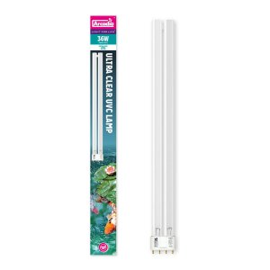 Kompaktní UVC žárovka pro redukci růstu řas a desinfekci vody v jezírkách a bazéncích.
