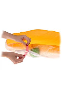 Hračka ve tvaru válečku zaujme pozornost díky využitým materiálům.