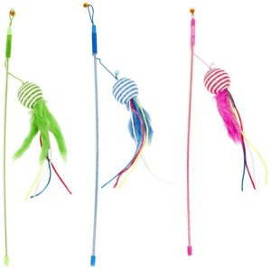 Škádlítko pro kočky Beeztees s rolničkou a plyšovými pírky.