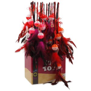 Vábnička s ratanovým míčkem a pestrobarevnými peříčky je skvělým nástrojem pro rozvoj loveckého instinktu a podporu zdravého pohybu.
