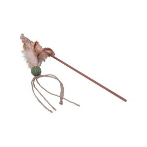 Vábnička s rukojetí z odolného dřeva sapeli má závěs s peříčky, kuličkou z lisované šanty kočičí (catnipu) a provázkovými …