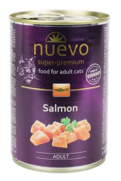 Konzerva Nuevo kočka adult Losos má díky vysokému množství mastných kyselin omega-3 a omega-6 vysoce blahodárné účinky na srst a kůži, dále mají za následek dlouhý a aktivní život Vaší kočky.