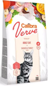 Calibra Cat Verve Adult Chicken & Turkey je kompletní krmivo bez obilovin s vysokým obsahem čerstvého masa – s kuřetem a krůtou.