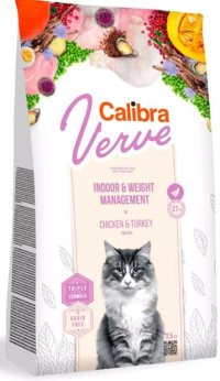 Calibra Cat Verve Indoor + Weight Management Chicken & Turkey je kompletní krmivo bez obilovin s vysokým obsahem čerstvého masa – s kuřetem a krůtou.