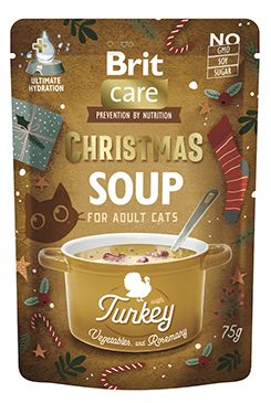 Vánoční řada Brit Care Christmas Soup pro kočky byla vytvořena jako limitovaná edice, která spojuje kvalitní maso, zeleninu a bylinky s vysokým obsahem vlhkosti pro podporu hydratace.