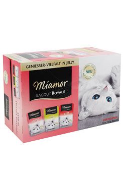 4 x kapsička s krůtím masem v delikátním rosolu, 4 x kapsička s masem z lososa v delikátním rosolu, 4 x kapsička s telecím masem v delikátním rosolu.