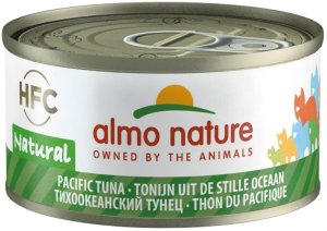 Konzerva s celým kousky tuňáka a vysokým obsahem krevet.