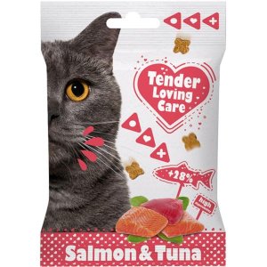 Lahodný funkční pamlsek jemné textury pro kočky s Omega 3 a DHA s lososem a tuňákem.