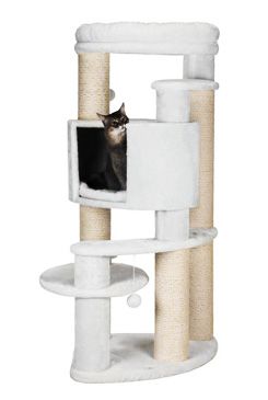 XXL velikost určená pro velká plemena kočekjeskyňka vystlaná plyšem s oboustranným polštářem (lze prát v ruce)vypolstrovaná odpočívadlaodpočívadlo s odnímatelným pelíškem (lze prát v ruce)se zavěšenou hračkoumateriál: sisal: o 8 mm/ plyš (polyester): 280 g/m2rozměry základny: 64 x 64 cmvýška: 147 cmbarva: bílá