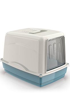 Uzavřené, prostorné wc pro kočky s dvířky z kvalitního odolného plastu.
