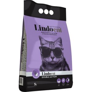 Lindocat Double Action s jemnou vůni levandule je hrudkující neprašné stelivo vyrobené ze 100% přírodního bílého bentonitu s fialovými …