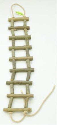 Provazový žebřík s příčkami z větví z tvrdšího dřeva.