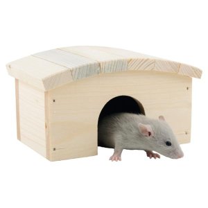 Domeček z měkkého dřeva s rovnou střechou pro křečky, křečíky, myši a jiné malé hlodavce.