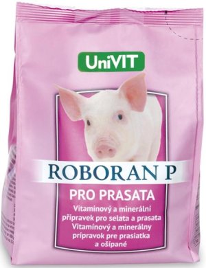 ROBORAN P je přísada do krmiva pro selata a prasata, jejichž výkrm je prováděn na základě obilných šrotů nebo méně hodnotných krmiv, které neobsahují fyziologicky potřebná množství vitamínů, minerálních látek a živin.