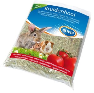 Bylinkové seno Duvo+ s přidanými sušenými rajčaty - doplňkové krmivo pro králíky a hlodavce.