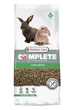 Extrudované pelety, bohaté na vlákninu, vše v jednom pro dospělé (zakrslé) králíky.Versele-Laga Complete Cuni Adult poskytuje výživu bez zbytečných starostí.