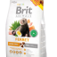 Brit Animals kompletní krmivo bez obilovin pro fretky.Superprémiové krmivo obsahující taurin pro podporu srdce.Obsahuje juku schidigeru pro omezení zápachuObsahuje taurin pro zdravé srdceObsahuje hexametafosfát sodný pro prevenci zubního plaku a kamenaPro zdravou imunituPro lesklou srst Složení:kuřecí moučka 26%, sušený hrách, vykoštěné kuře 15%, sušené brambory, kuřecí tuk (chráněno směsí tokoferolů) 10%, sušená vejce 8%, vykoštěný losos 6%, kuřecí játra 3%, lososový olej 2%, sušená jablka, mrkev, pivovarské kvasnice, extrakt z juky schidigera (150 mg/kg), mannanoligosacharidy (120 mg/kg), fructooligosacharidy (80 mg/kg).Analytické složky:hrubý protein 40,0 %, obsah tuku 22,0 %, hrubá vláknina 2,0 %, hrubý popel 6,8 %, vlhkost 10,0 %, vápník 1,0 %, fosfor 0,8 %, sodík 0,25 %.Nutriční složení:vitamín A 24 000 I.U., vitamín D3 1 500 I.U., vitamín E (alfa-tokoferol) 300 mg, vitamín C 50 mg, vitamín K 0,1 mg, vitamín B1 1 mg, vitamín B2 3 mg, vitamín B3 12 mg, vitamín B5 6 mg, vitamín B6 1 mg, vitamín B9 0,2 mg, vitamín B12 0,04 mg, biotin 0,7 mg, cholin-chlorid 600 mg, taurin 2 200 mg, DL-methionin 10 mg, zinek 110 mg, železo 70 mg, mangan 80 mg, měď 10 mg, jód 2 mg, selen 0,25 mg, hexametafosfát sodný 500 mg.Metabolizovatelná energie:4 150 kcal/kg. Pokyny ke krmení: