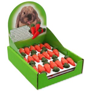 Pamlsky ve tvaru mrkviček pro hlodavce.