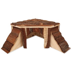 Domek rohový - křečekSkvělý domeček s plochou sřechou, kterou může zvířátko rovněž využít k pobytu, když nebude mít zrovna zájem skrýt se před světem.