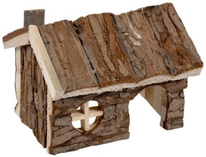 Domeček z měkkého dřeva s rovnou střechou pro křečky, křečíky, myši a jiné malé hlodavce.