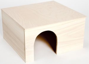 Prostorný domek z kvalitní překližky, bezpečné pro drobné savce (překližka s certifikátem pro výrobu dětského nábytku).