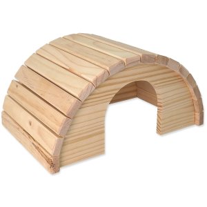 Dřevěný půlkruhový domek pro hlodavce.