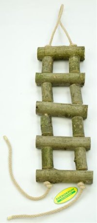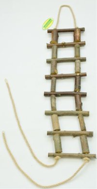Provazový žebřík s příčkami z větví z tvrdšího dřeva.