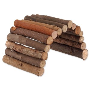 Tvarovatelný most z přírodního dřeva s kůrou pro zábavu a předcházení nudy králíků a hlodavců.