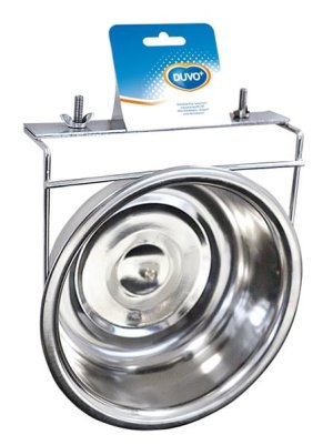 Nerezová miska se závěsem na dva šrouby je vhodná do klecí, voliér či transportních klecí.