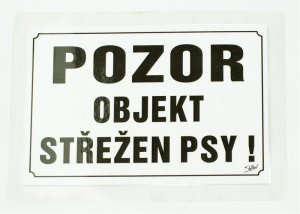 Laminovaná výstražná tabulka "Pozor, objekt střežen psy".