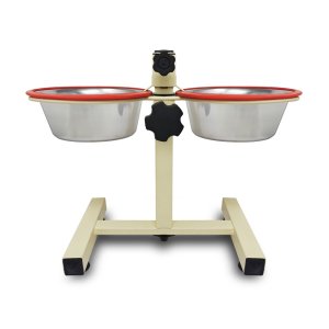 Stojan s nerez lavorky 2x4,3 l SILIKON kroužek protihlukuVýškově nastavitelný stojánek v bílé barvě se dvěma nerezovými lavorky usnadní přístup k potravě.