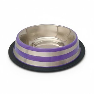Nerezová miska, opatřená silikonovým kroužkem, je více stabilní a neklouže po podlaze.