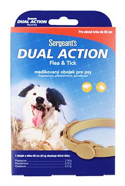 Ektoparazitní obojek pro psy• obojek proti blechám a klíšťatům• voděodolný• příjemně voní• bezpečný, mohou je používat štěňata od 3 měsíců i feny v období březosti i kojení• určen k trvalému nošení• pokud se obojek zamastí, stačí ho omýt mýdlovou vodou• účinkuje 6 měsícůÚčinné látky: Propoxurum 2,16 g, phenothrinum 0,72 g, pyrodonum 0,72 gHmotnost: 24 gDélka: 60 cmBarva: kávově hnědá