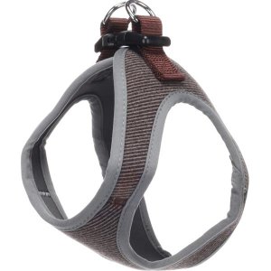 pohodlný postroj pro psy malých plemen vyvedený v minimalistickém stylu velmi snadná manipulace kroužek na uchycení vodítka Rozměry: 32 – 44 cm