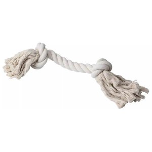 Bavlněné přetahovadlo pro psy spletené z pevných přírodních provázků má uzly pro lepší úchop při hře.