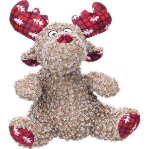 Vánoční hračka pro psy ve tvaru soba s šálou kolem krku je vyrobena z hebkého plyše.