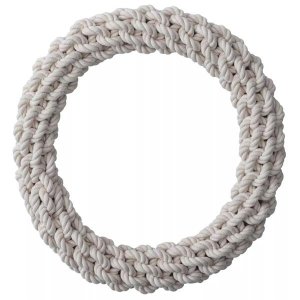 Bavlněné přetahovadlo pro psy ve tvaru kruhu je spletené z pevných přírodních provázků.