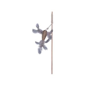 Vábnička s rukojetí z odolného dřeva sapeli má závěs s peříčky, myškou z lisované šanty kočičí (catnipu) a provázkovými …