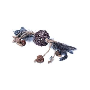 Hračku tvoří ratanový míček, k němuž jsou připevněná peříčka a jutové provázky s rolničkami a kuličkami z lisovaného catnipu (šanty kočičí) …
