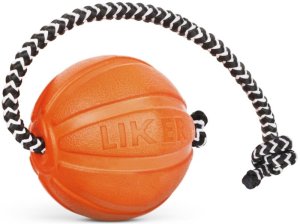 LIKER CORD 5 - odolný míček s provazem, hračka pro střední a větší plemena psů. - výrazná oranžová barva míčku - plave na vodě - míček …