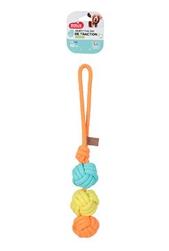 Pletená provazová hračka pro psy, vhodná na házení, žvýkání a přetahování.Vyrobené z měkkého provazu, který je pro psa příjemný na žvýkání.Štítek s logem z eko kůže Žvýkáním se snižuje množství zubního plakuPři hraní se posiluje pouto se zvířetemČtyři modely: míček, míček na laně, činka a tři míčky na laně.Čtyři velikosti: 6 cm, 29 cm, 18 cm, 42 cm.
