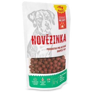 Zdravé mlsky Hovězinka jsou ideální odměnou pro aktivní dospělé psy všech plemen.