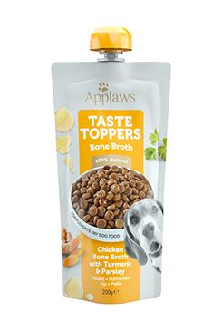 Lahodný hustý vývar z kuřecích kostí s bylinkami ve Smoothie balení s uzavíratelným víčkem.Doplňkové krmivo Applaws Taste Toppers přináší chutný a výživný vývar, který skvěle doplní běžné krmivo a zpestří jídelníček vašeho psa.