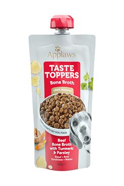 Lahodný hustý vývar z hovězích kostí s bylinkami ve Smoothie balení s uzavíratelným víčkem.Doplňkové krmivo Applaws Taste Toppers přináší chutný a výživný vývar, který skvěle doplní běžné krmivo a zpestří jídelníček vašeho psa.