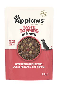 Kapsička pro psy s kuřecími prsy, brokolicí, jablkem a quinou v lahodném vývaru.Applaws Taste Toppers představuje lahodné doplňkové krmivo, které skvěle oživí každodenní stravu vašeho pejska.