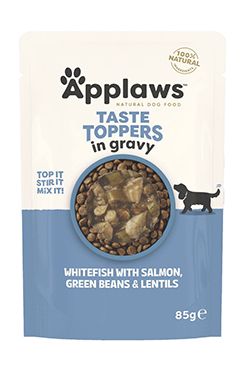 Kapsička pro psy, tuňák s dýní, cizrnou a kapustičkou v jemné omáčce, geniální pochoutka pro milovníky ryb. Applaws Taste Toppers nabízí lahodné doplňkové krmivo pro psy.
