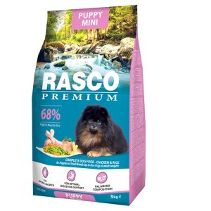 Superprémiové kompletní krmivo kuřecí s rýží pro štěňata a mladé psy ve věku 1-12 měsíců, malých a trpasličích plemen (1-10 kg).
