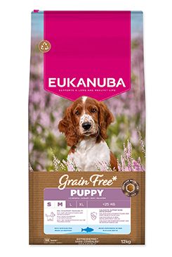 Kompletní, superprémiové krmivo bez obilovin s bohatým obsahem mořských ryb pro štěňata malých a středně velkých plemen.Toto suché krmivo EUKANUBA Grain Free * je speciálně vyvinuto pro štěňata malých a středně velkých plemen od 1 do 12 měsíců.